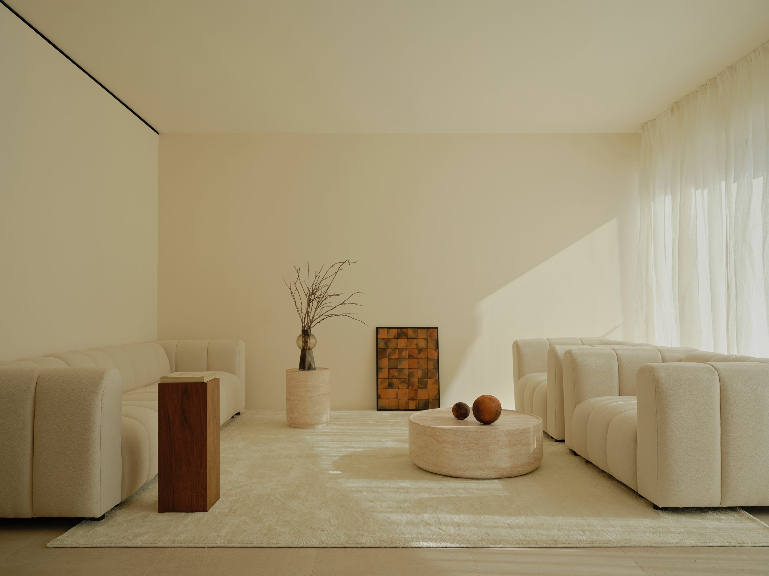 Los interiores se resuelven de manera directa. En el contexto de un desarrollo residencial, se evita la complejidad innecesaria. La organización se apoya en la proporción y en la continuidad material, donde la calidad espacial depende de la precisión de las relaciones entre los elementos.