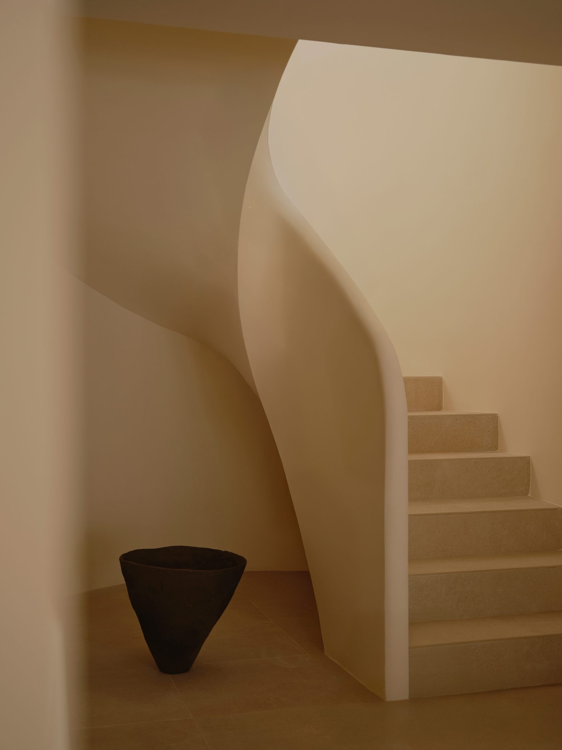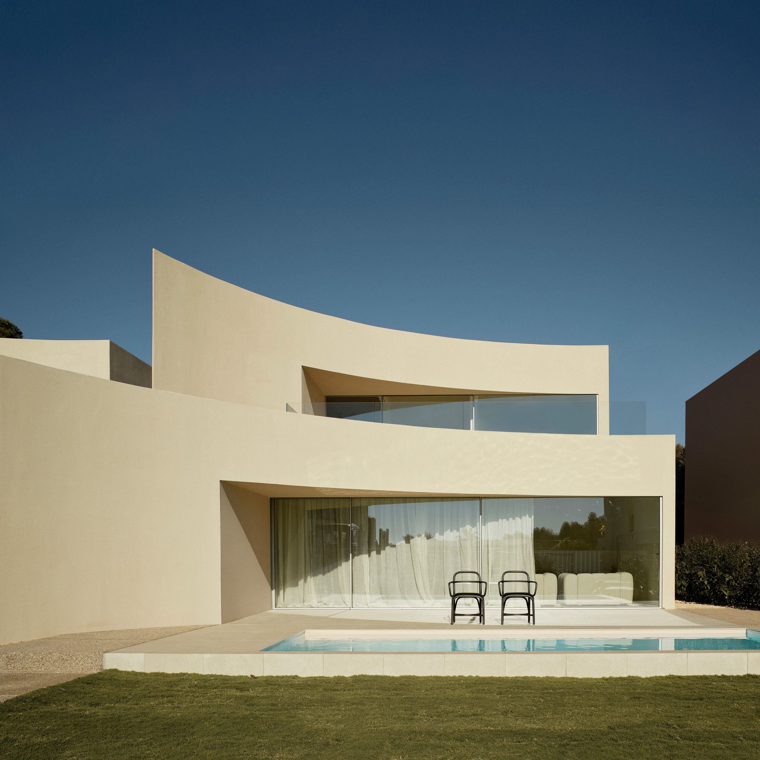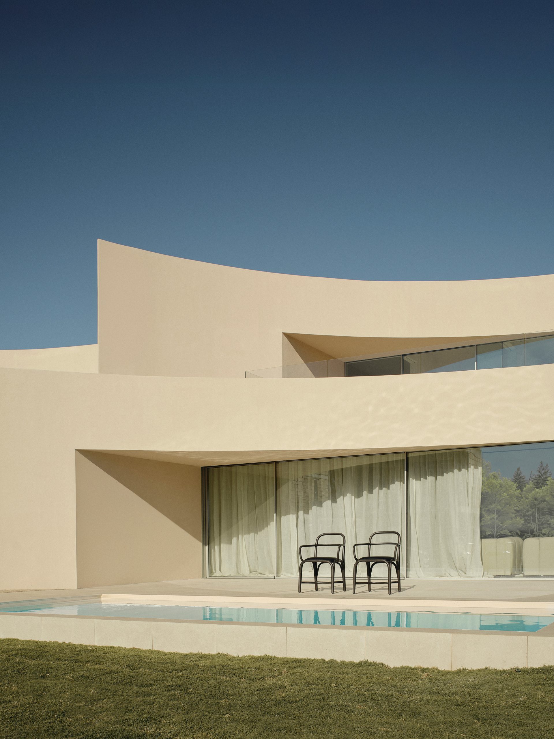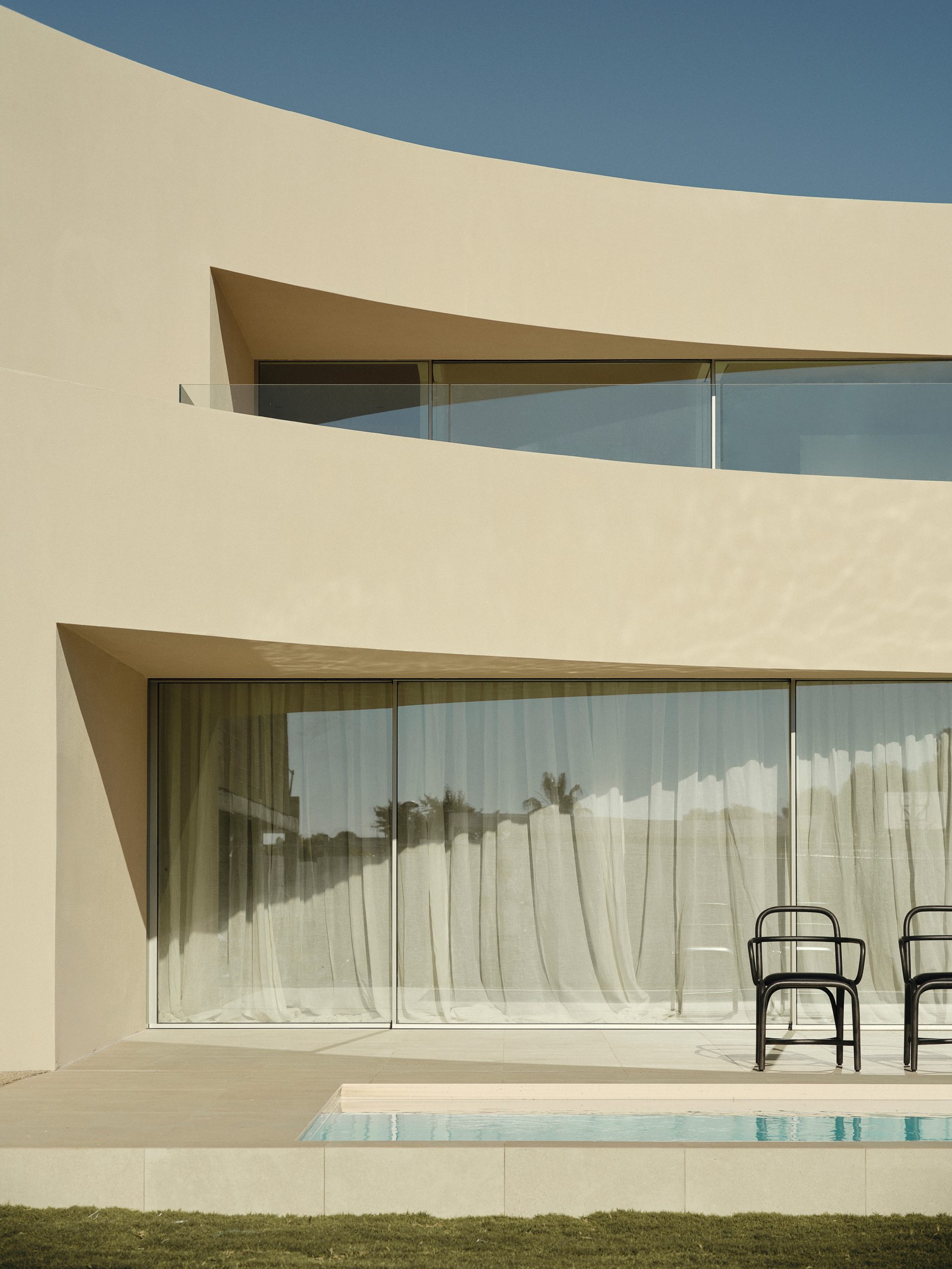 La geometría responde a esta lógica. Las curvaturas no son un gesto autónomo, sino el resultado del ajuste entre las condiciones del lugar, la organización del programa y el sistema constructivo.