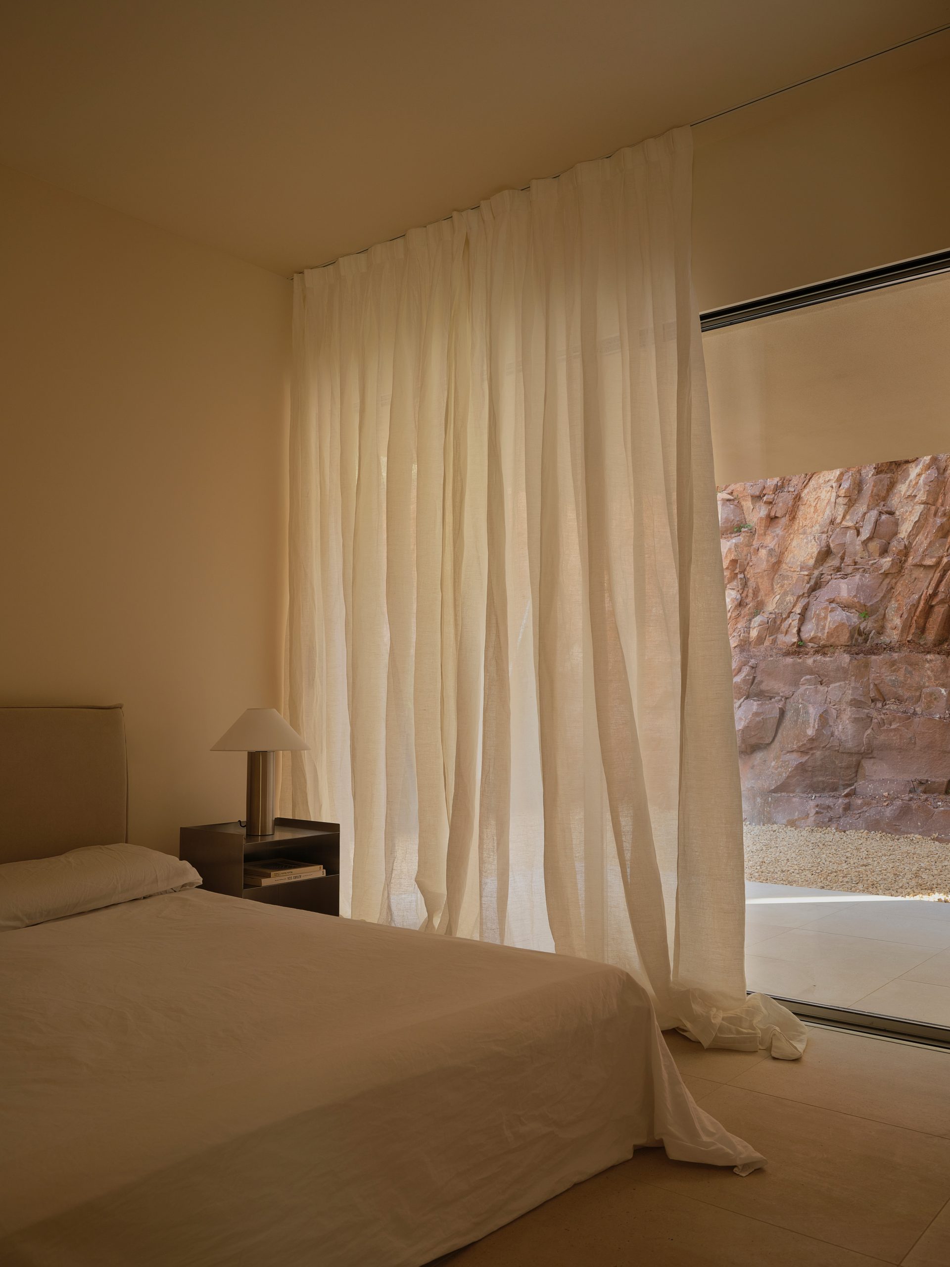 Esta proximidad no se traduce en un gesto formal, sino en una serie de decisiones precisas. La implantación, la orientación y la apertura de las estancias principales se organizan en relación directa con la pinada, estableciendo vínculos controlados entre interior y entorno.
